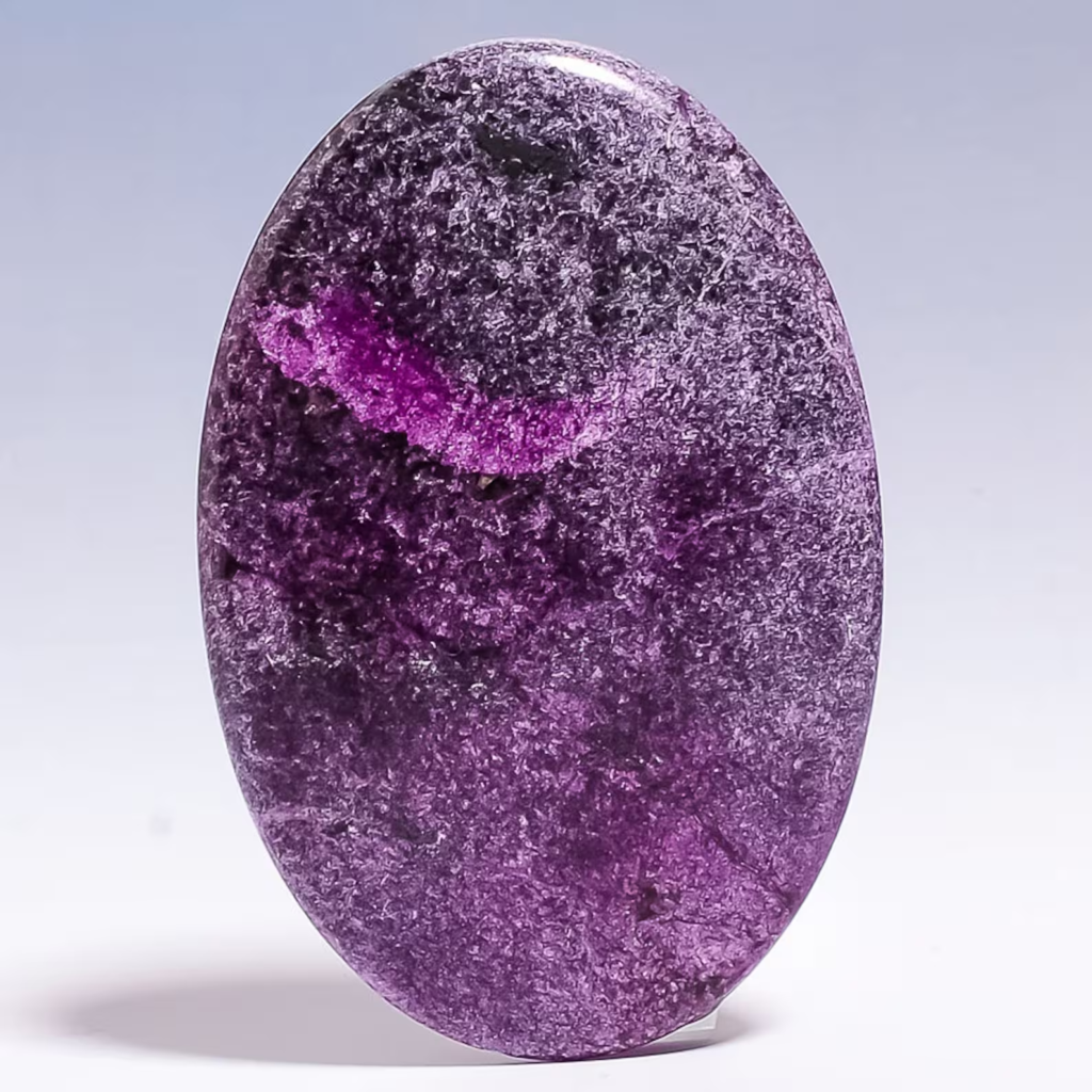 Purpoliote is an incredible purple stone. It is a core of manganese phosphate stone, and it has ray of violet color due to various amount of manganese present in it. Normally, it is quite a deep purple, it is not crystalline but have a deep matt surface.