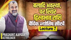Lecture 7 Thumbnail (1) Posted on 30/11/2024 0 Leave a Reply Cancel replyYour email address will not be published.** Save my name, email, and website in this browser for the next time I comment. Post navigation <span class="meta-nav">Published In</span>बलादि अवस्था, चर स्थिर द्विस्वभाव राशि | Learn Vedic Astrology | Lecture 7 | Prashant Kapoor